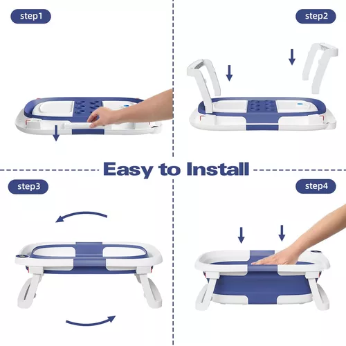 La bañera para bebé en color azul está diseñada para ofrecerte una experiencia práctica y eficiente durante la hora del baño. Su diseño innovador permite que se pliegue en tres simples pasos, alcanzando un grosor de solo 2 pulgadas, ideal para ahorrar espacio. Perfecta para hogares con áreas limitadas de almacenamiento, esta bañera plegable se puede colgar en la pared utilizando el orificio integrado. Ya no tendrás que preocuparte por donde acomodarla, ya que su diseño compacto es una solución ingeniosa para cualquier hogar moderno.