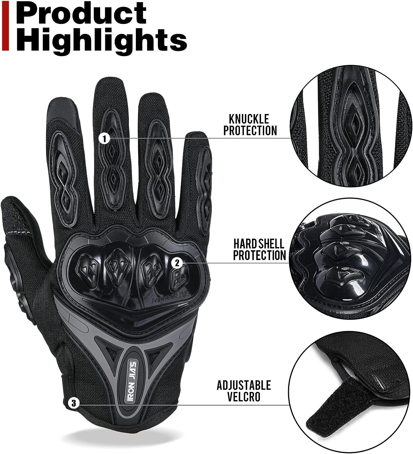 – **Diseño ergonómico:** Proporciona protección adicional en los nudillos gracias a su cáscara dura y asegura un ajuste cómodo y seguro.