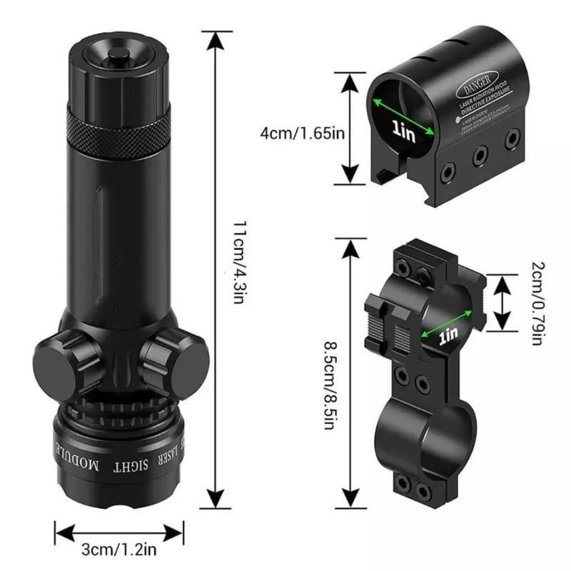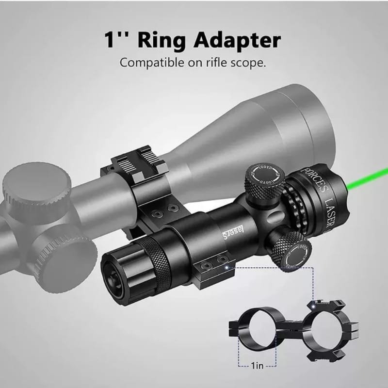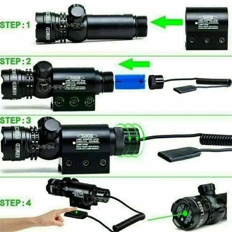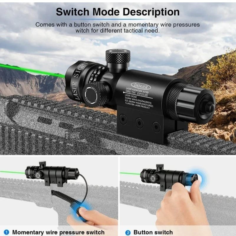 - 1x Alcance de vista de láser de punto verde con interruptores