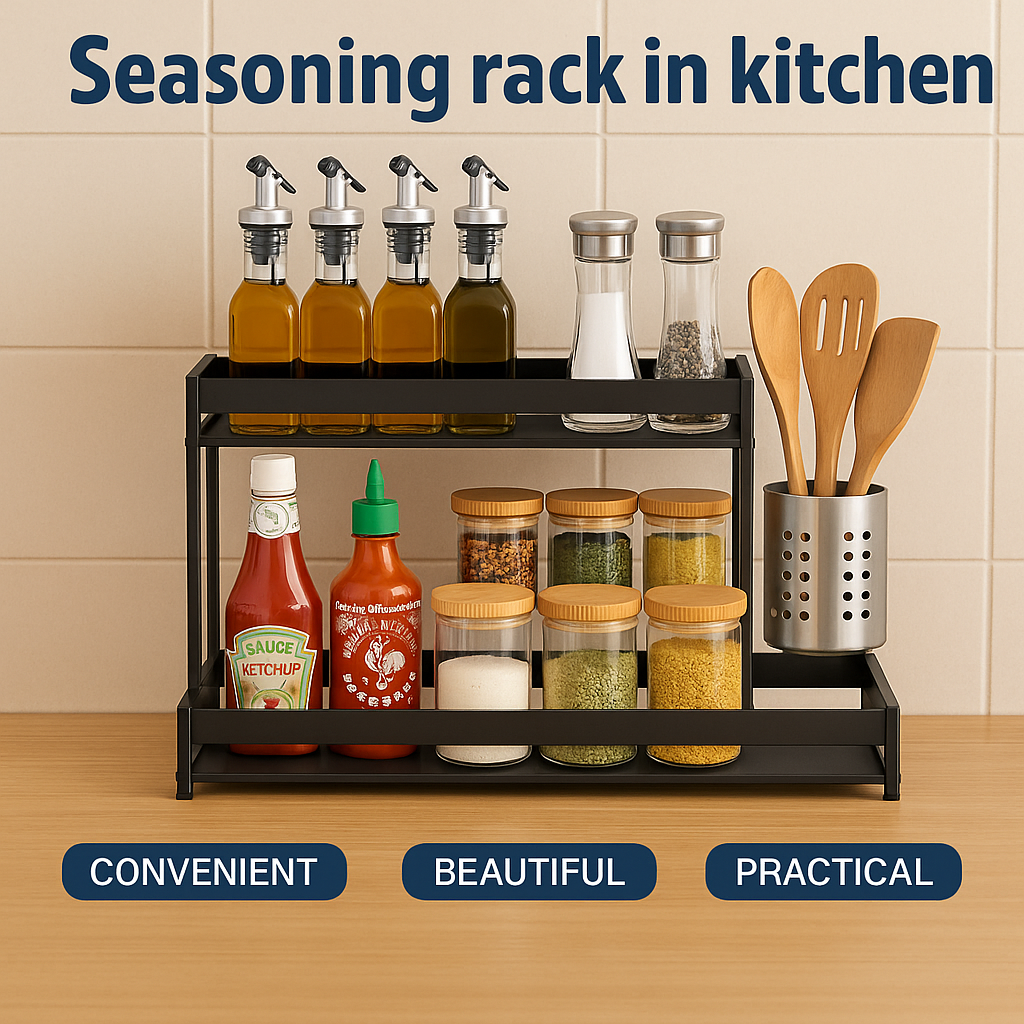 Transforma tu cocina en un espacio organizado y elegante con el Seasoning Rack, el organizador de cocina pensado para simplificar tu día a día. Este práctico accesorio no solo mantiene tus especias, condimentos y botellas al alcance de la mano, sino que también aprovecha al máximo el espacio disponible. Diseñado para quienes buscan comodidad, funcionalidad y un toque decorativo, el Seasoning Rack es el complemento ideal para cocinas modernas.
